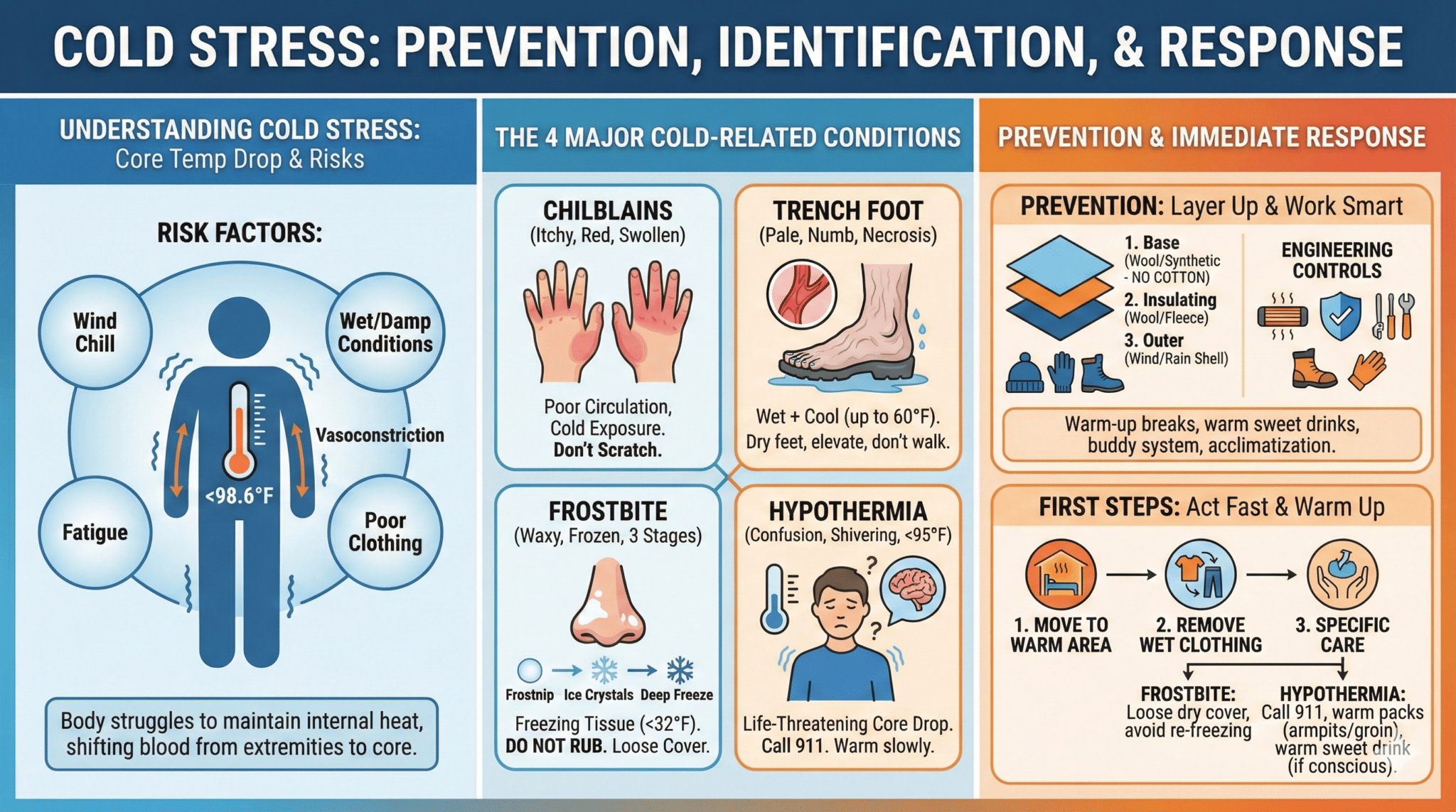 - How to treat cold-related conditions, and what are the emergency procedures employees should know to avoid injury